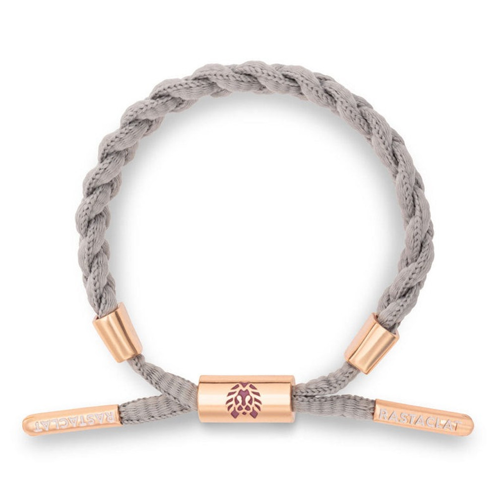 The Rastaclat I Love U bracelet carries a subtle yet powerful message of love, now in a light grey colorway. As part of the Love collection, it’s the perfect gift for yourself or someone who deserves a little extra care. Finished with a heart-detailed metal clasp and contrasting accents. Handcrafted with an adjustable closure and metal tips. Designed in Long Beach, California.